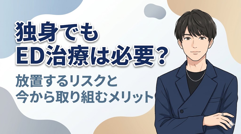 「今はパートナーがいないから、勃起力が落ちても困らない」と考えて、ED(勃起不全)を放置していませんか。実は、独身男性にとってのED治療は、単に夜の営みを充実さ... -