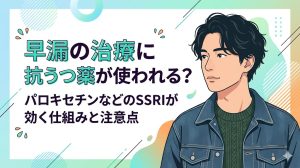 泌尿器科で処方されるダポキセチンなどの西洋薬(SSRI)は、脳内のセロトニンに直接働きかけて射精を遅らせます。これらは服用したその時に高い効果を発揮しますが、副作用として吐き気や頭痛が出ることもあります。
